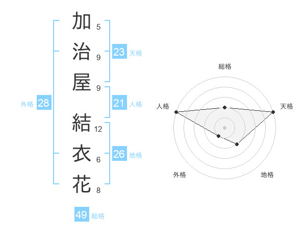 加治屋 結衣花さんを姓名の画数から五運を鑑定