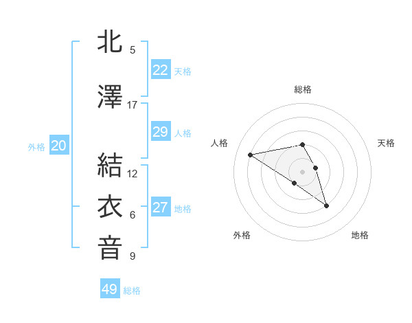 北澤 結衣音さんの地格は27画の3点!