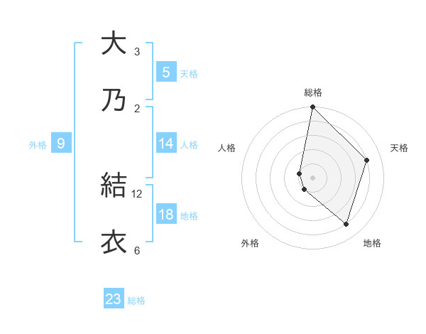 大乃 結衣さんを姓名の画数から五運を鑑定
