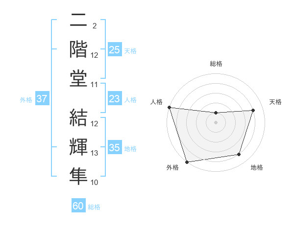 二階堂 結輝隼さんの外格は37画の5点!