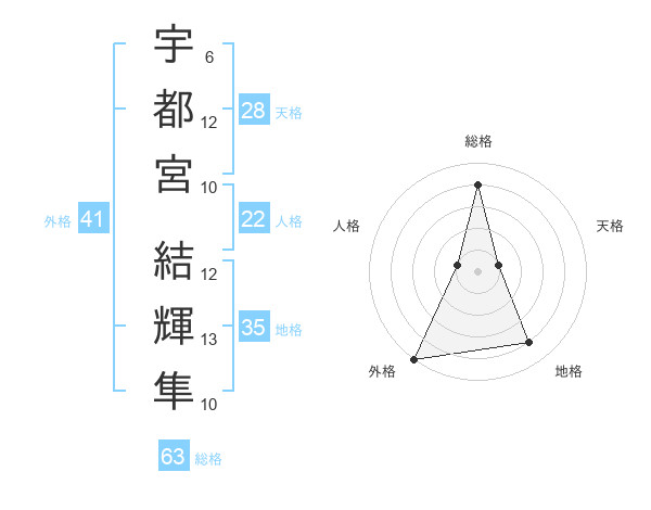 宇都宮 結輝隼さんを姓名の画数から五運を鑑定