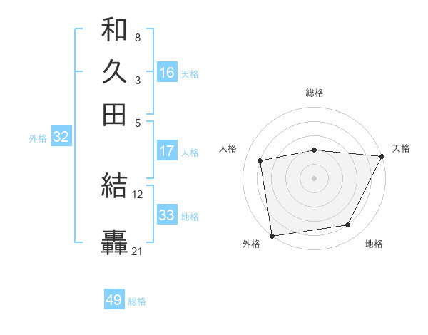 和久田 結轟さんを姓名の画数から五運を鑑定