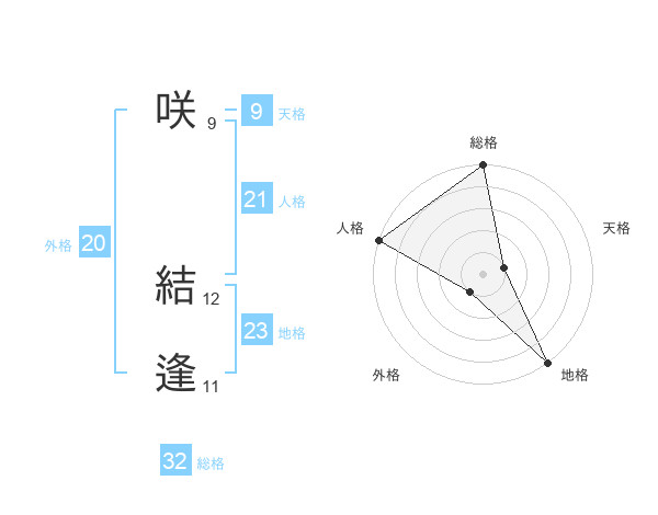 咲 結逢さんの総格は32画の5点!