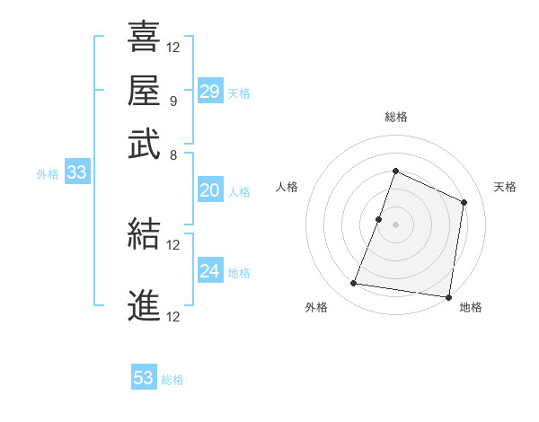 喜屋武 結進さんを姓名の画数から五運を鑑定