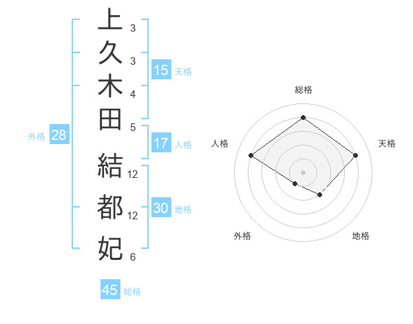 上久木田 結都妃さんの総格は45画の4点!
