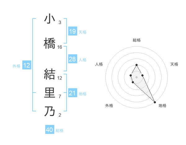 小橋 結里乃さんを姓名の画数から五運を鑑定