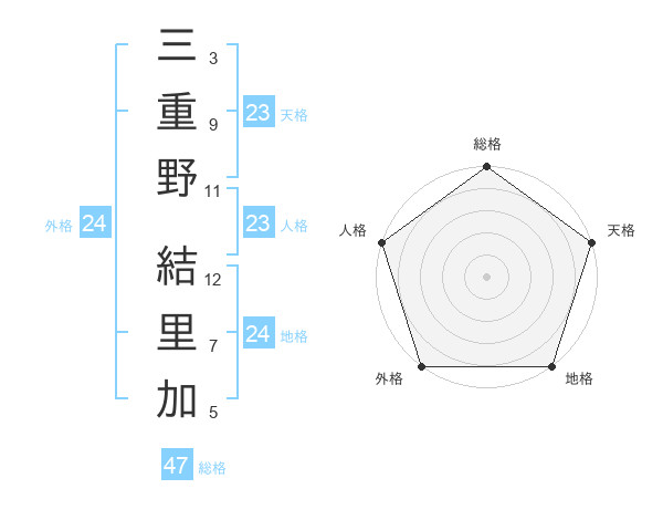 三重野 結里加さんの外格は24画の5点!