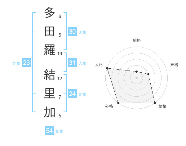 多田羅 結里加さんを姓名の画数から五運を鑑定