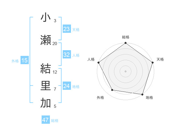 小瀬 結里加さんを姓名の画数から五運を鑑定