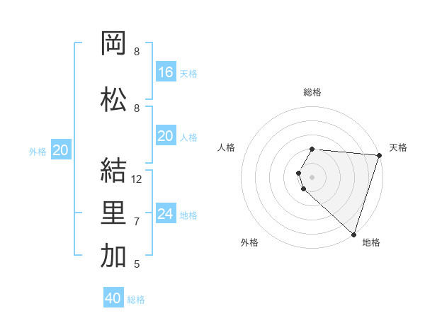 岡松 結里加さんを姓名の画数から五運を鑑定