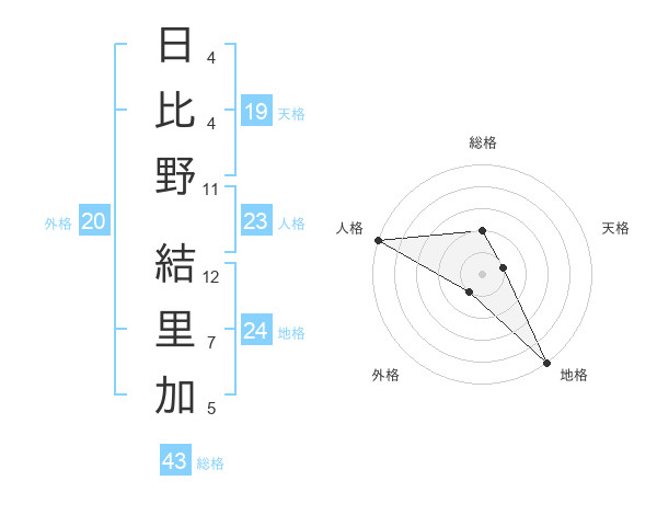 日比野 結里加さんを姓名の画数から五運を鑑定