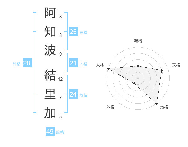 阿知波 結里加さんの天格は25画の4点!