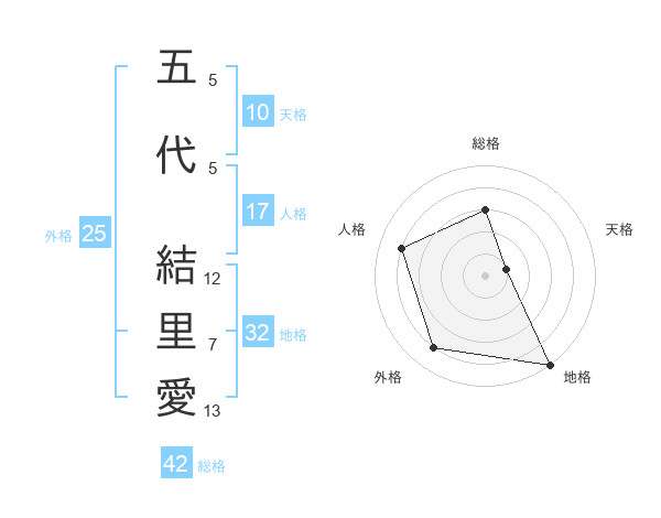 五代 結里愛さんを姓名の画数から五運を鑑定