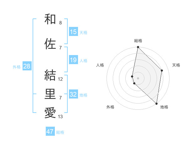 和佐 結里愛さんの総格は47画の5点!
