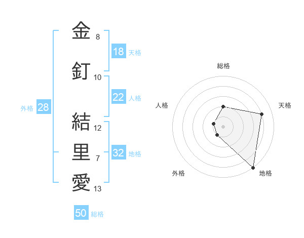 金釘 結里愛さんの天格は18画の4点!