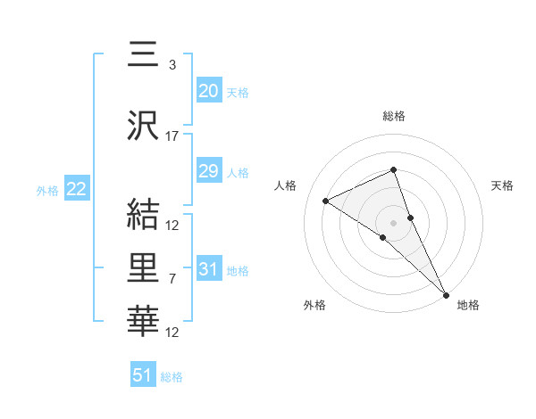三沢 結里華さんを姓名の画数から五運を鑑定