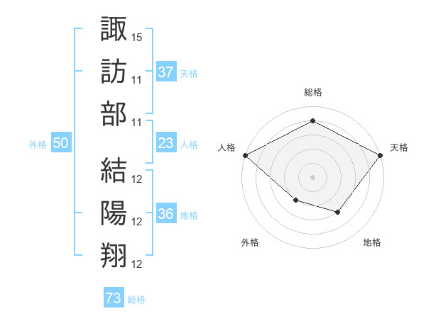 諏訪部 結陽翔さんの総格は73画の4点!