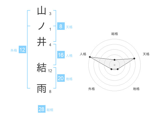 山ノ井 結雨さんを姓名の画数から五運を鑑定