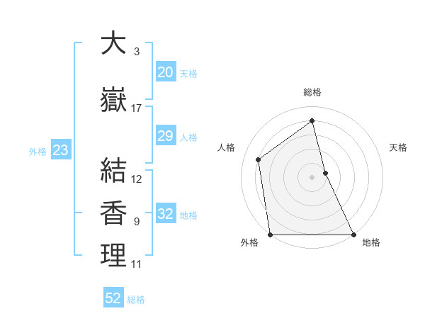 大嶽 結香理さんを姓名の画数から五運を鑑定