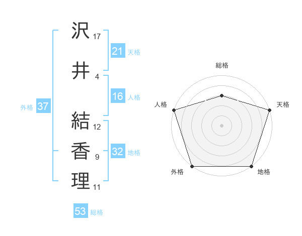 沢井 結香理さんを姓名の画数から五運を鑑定