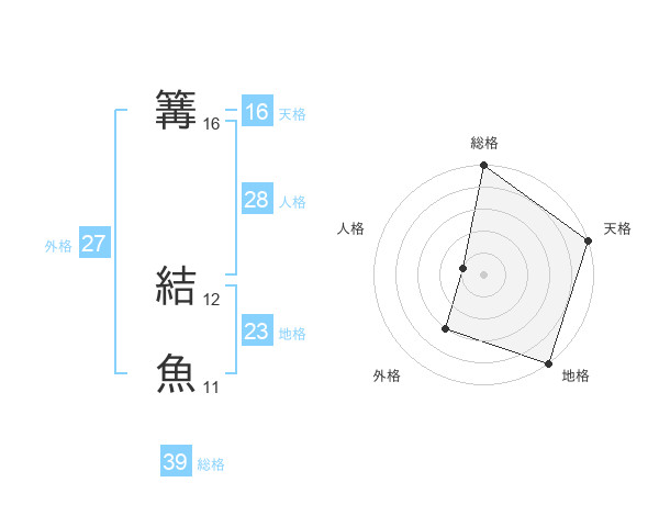 篝 結魚さんの総格は39画の5点!