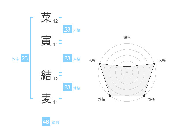 菜寅 結麦さんを姓名の画数から五運を鑑定