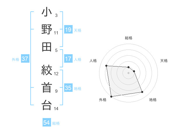 小野田 絞首台さんを姓名の画数から五運を鑑定