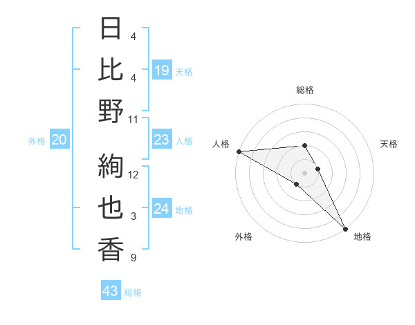 日比野 絢也香さんの総格は43画の2点!