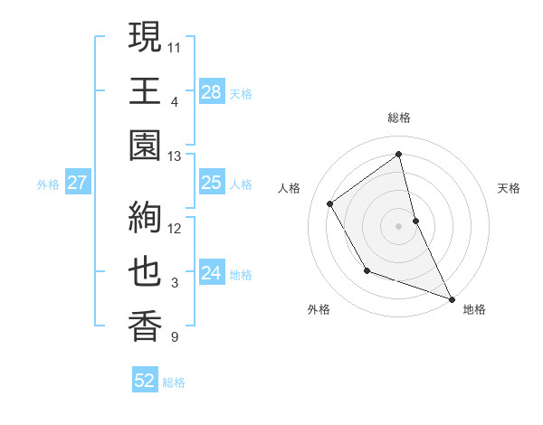 現王園 絢也香さんを姓名の画数から五運を鑑定