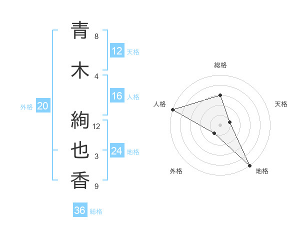 青木 絢也香さんを姓名の画数から五運を鑑定