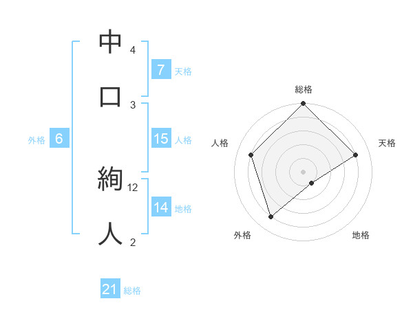 中口 絢人さんの総格は21画の5点!