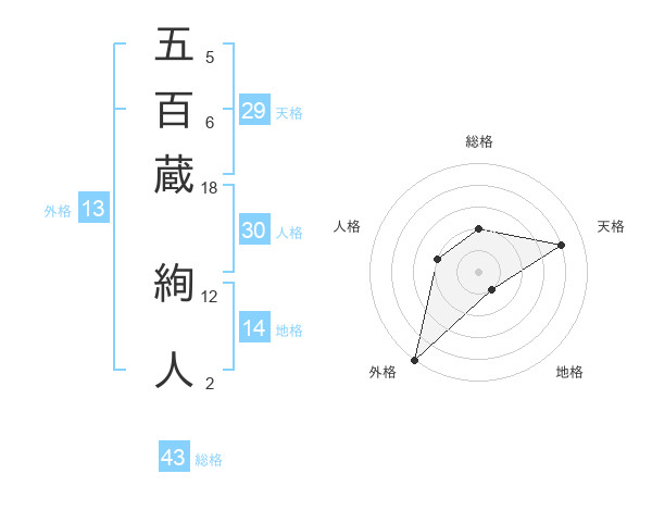 五百蔵 絢人さんを姓名の画数から五運を鑑定