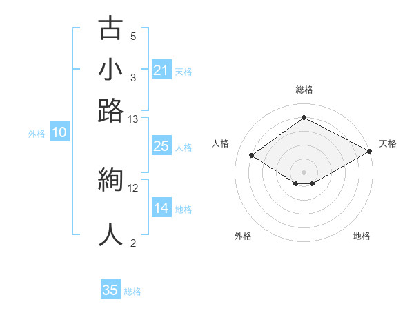 古小路 絢人さんの天格は21画の5点!
