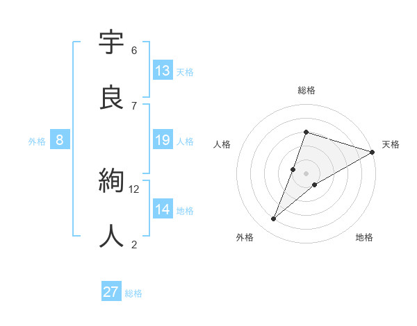 宇良 絢人さんの総格は27画の3点!