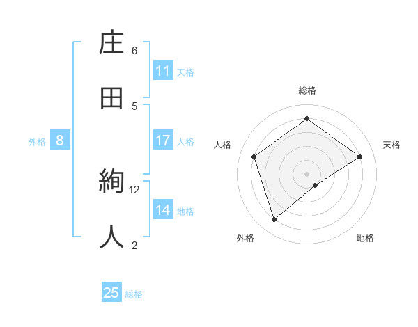 庄田 絢人さんの総格は25画の4点!