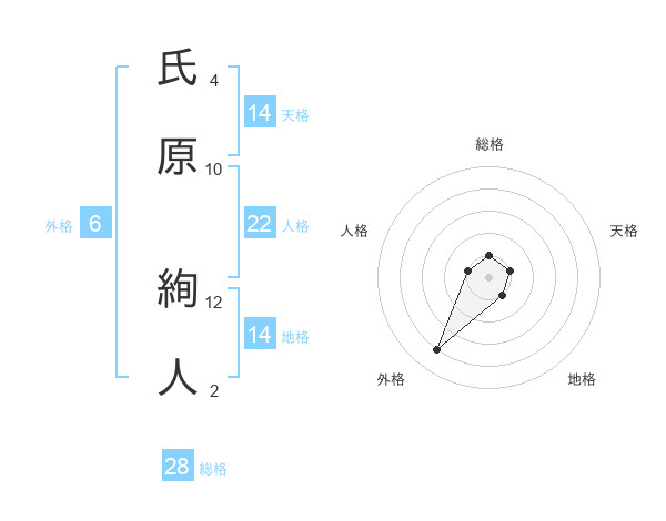 氏原 絢人さんの天格は14画の1点!