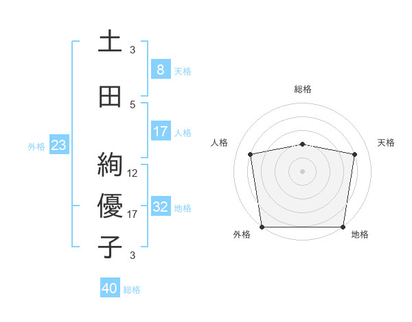 土田 絢優子さんの外格は23画の5点