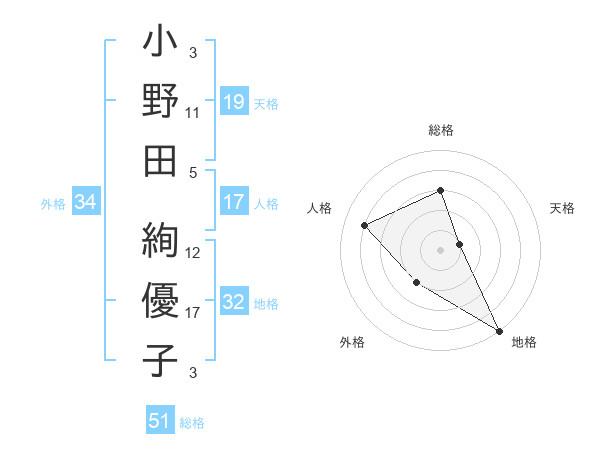 小野田 絢優子さんを姓名の画数から五運を鑑定