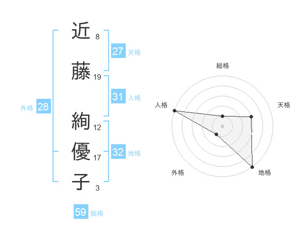 近藤 絢優子さんを姓名の画数から五運を鑑定