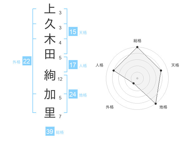 上久木田 絢加里さんを姓名の画数から五運を鑑定