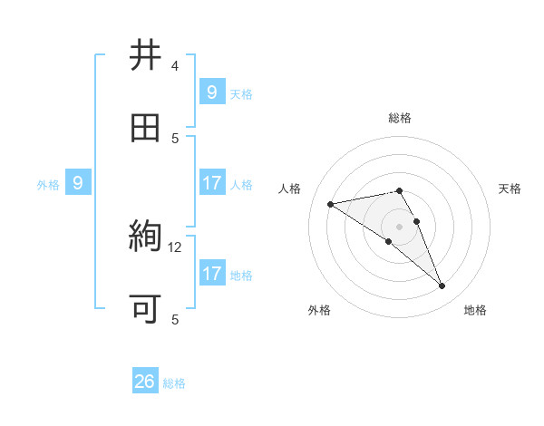 井田 絢可さんの総格は26画の2点!