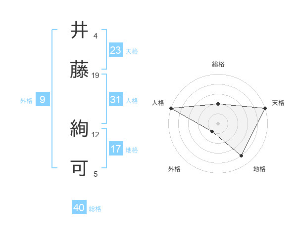 井藤 絢可さんの天格は23画の5点!