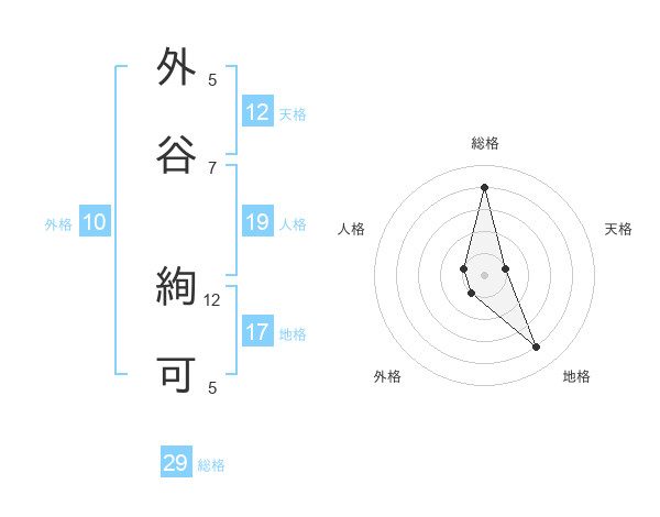 外谷 絢可さんを姓名の画数から五運を鑑定