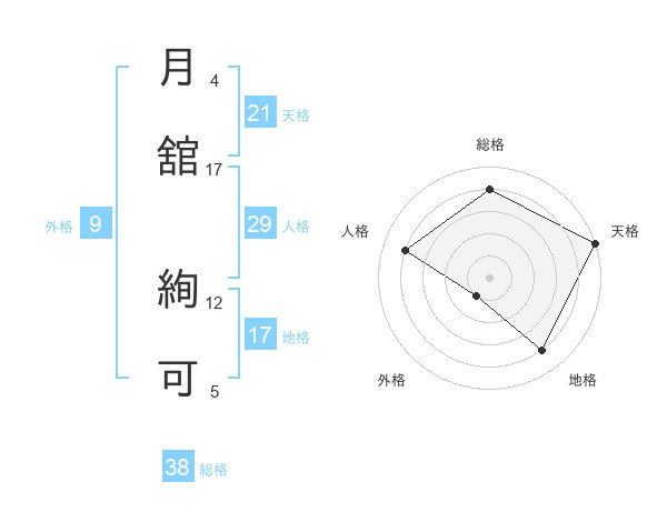 月舘 絢可さんの総格は38画の4点!