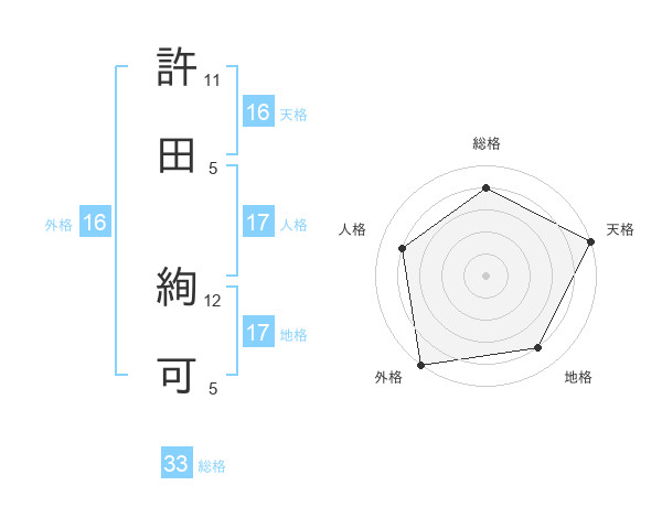 許田 絢可さんの総格は33画の4点!