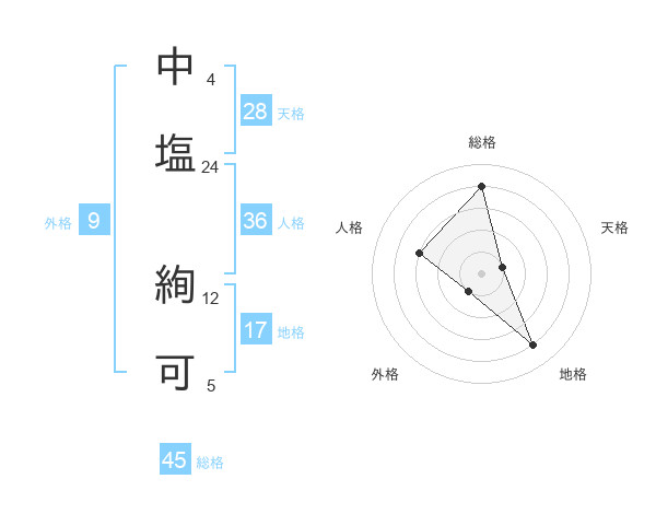 中塩 絢可さんの総格は45画の4点!