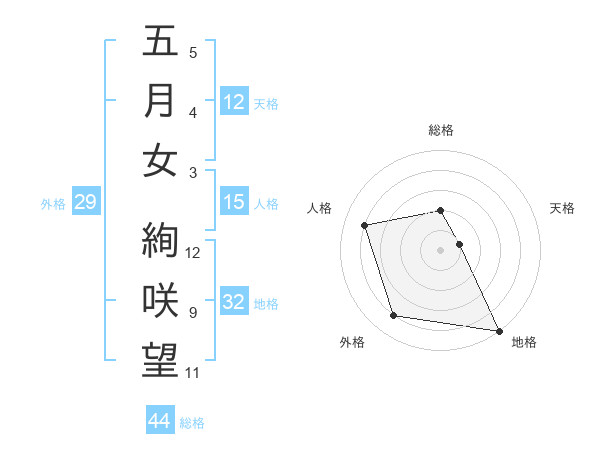 五月女 絢咲望さんを姓名の画数から五運を鑑定