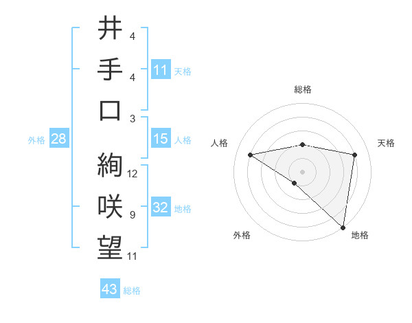 井手口 絢咲望さんを姓名の画数から五運を鑑定