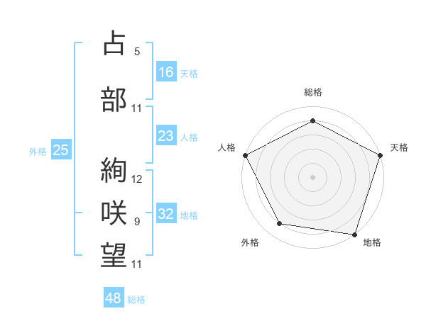 占部 絢咲望さんを姓名の画数から五運を鑑定