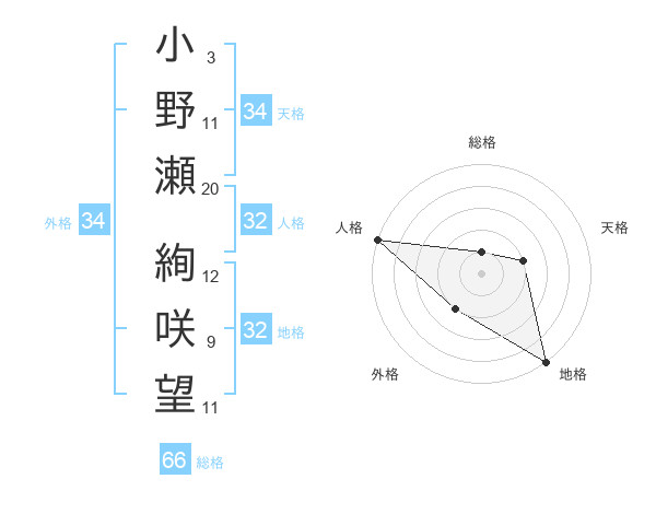 小野瀬 絢咲望さんを姓名の画数から五運を鑑定